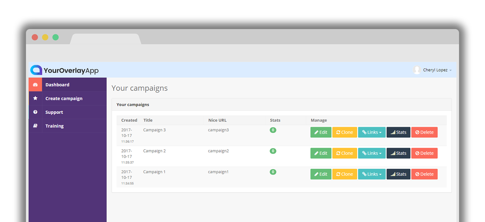 OVERLAY.SBS is set up so users can create an unlimited number of campaigns, giving you maximum flexibility.